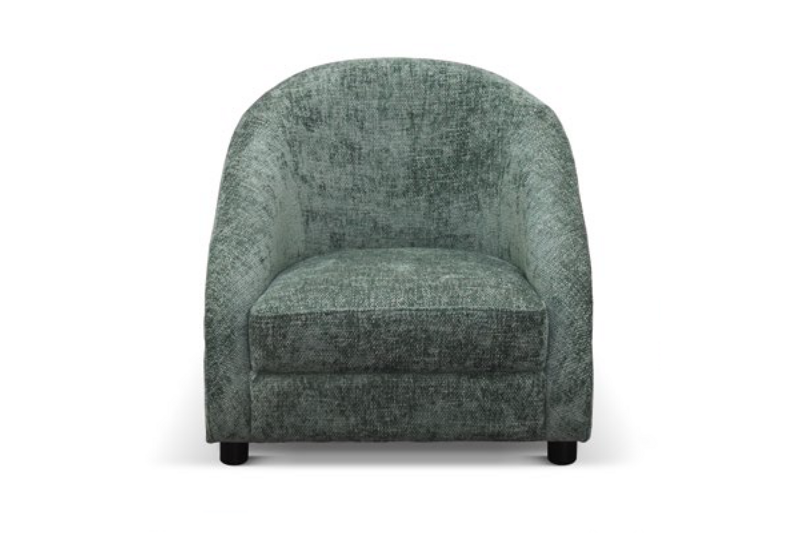 Tessuto Verde Elegante: Rivestita in tessuto verde di tendenza, questa poltrona porta freschezza e un tocco di colore naturale nell'ambiente, richiamando un'atmosfera serena e rilassante.