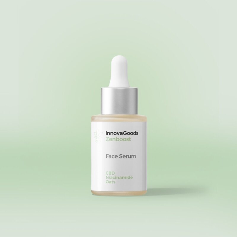 Il siero viso Zenboost InnovaGoods CBD nutre, lenisce, riduce arrossamenti e rughe, idrata, tonifica, rivitalizza e illumina la pelle. Contiene ingredienti naturali. Principi attivi: CBD, niacinamide, avena, calendula, acido ialuronico e Symcalmin®.